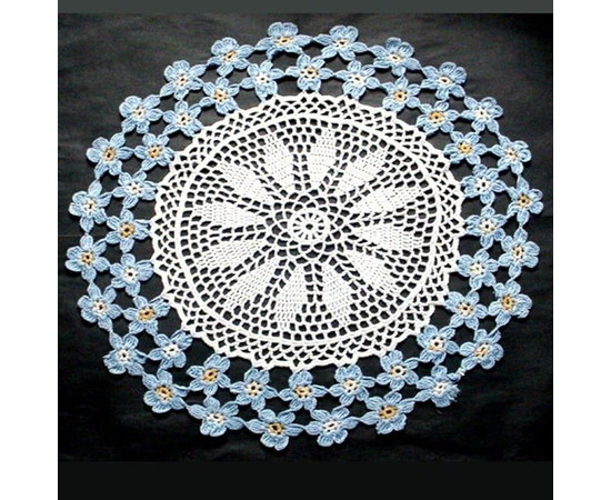 Vintage Blue and White Handmade Crochet Doily / Round Blue White Lace Doily / White Crochet Table Cloth / Vintage Table Decor / Vintage Wedding / Tea Time