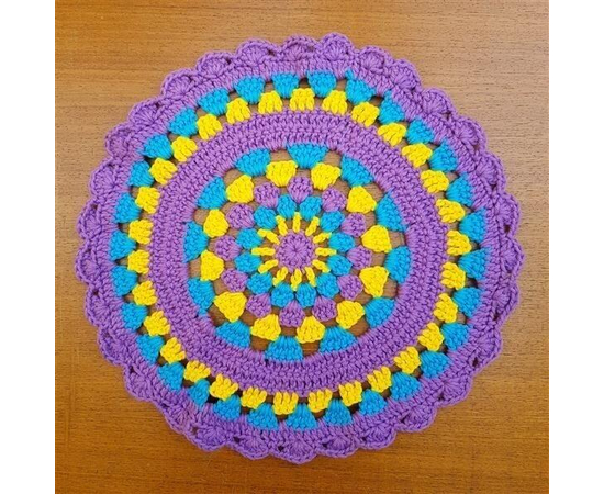 Handmade crocheted doily from high quality cotton yarn in multicolor. This product is hand knitted by the rural women artisan of Narsapur Lace cluster, Andhra Pradesh, India.