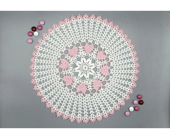 Handmade crocheted doily from high quality cotton yarn in light pink and white color. This product is hand knitted by the rural women artisan of Narsapur Lace cluster, Andhra Pradesh, India.