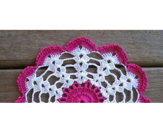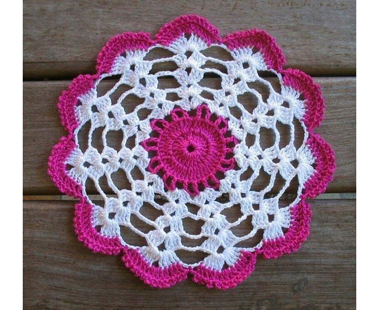 Vintage Style Crochet Lace Doily - Hand Crocheted Doilies - Handmade Cotton Table Centerpiece - Table Mat - Wedding Interior Decor - White & Pink Round Doily