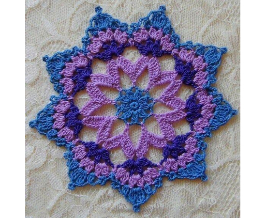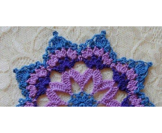 Handmade crocheted doily from high quality cotton yarn in shades of blue, and purple. This product is hand knitted by the rural women artisan of Narsapur Lace cluster, Andhra Pradesh, India.