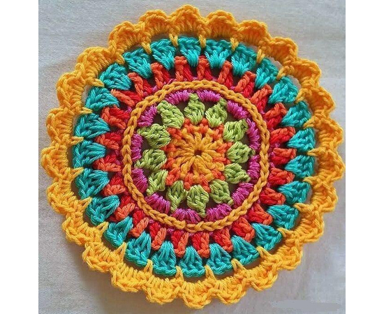 Mandala Placemat, Home Decor Round Doily, Hand Crocheted Doily, Lace Doily, Multicolor Lace napkin, Knitted coaster for cup, Table decoration, Floral motif