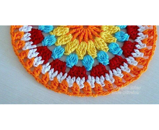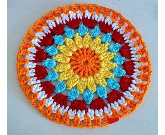 Handmade crocheted doily from high-quality cotton yarn in multicolor shades. This product is hand-knit by the rural women artisans of the Narsapur Lace cluster in Andhra Pradesh, India.