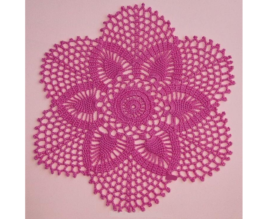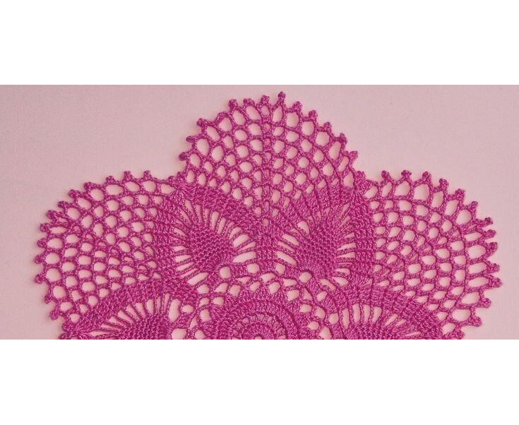 Handmade crocheted doily from high quality cotton yarn in pink color. This product is hand knitted by the rural women artisan of Narsapur Lace cluster, Andhra Pradesh, India.