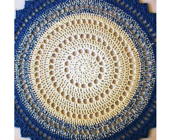 The product is made with 100% cotton yarn. This is hand knitted by the rural women artisan of Narsapur Lace cluster, Andhra Pradesh, India.