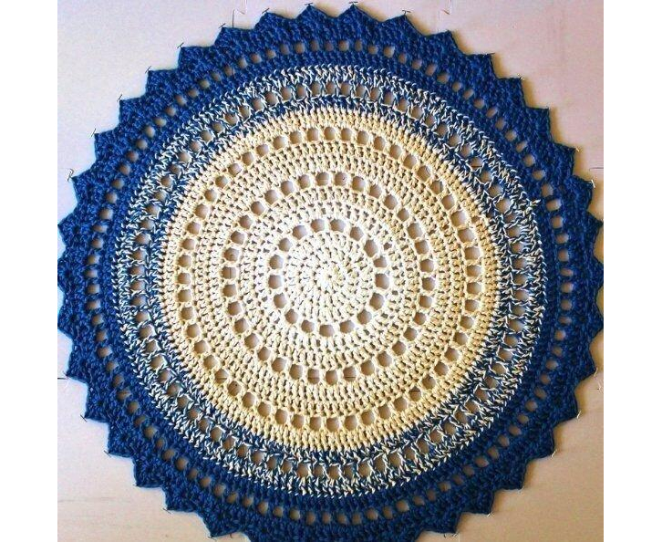 Handmade Blue and Beige Crochet Doily / Round Blue Beige Lace Doily / White Crochet Table Cloth / Vintage Table Decor / Vintage Wedding Decor/ Tea Time