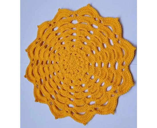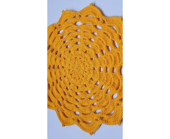 Handmade crocheted doily from high quality cotton yarn in yellow color. This product is hand knitted by the rural women artisan of Narsapur Lace cluster, Andhra Pradesh, India.