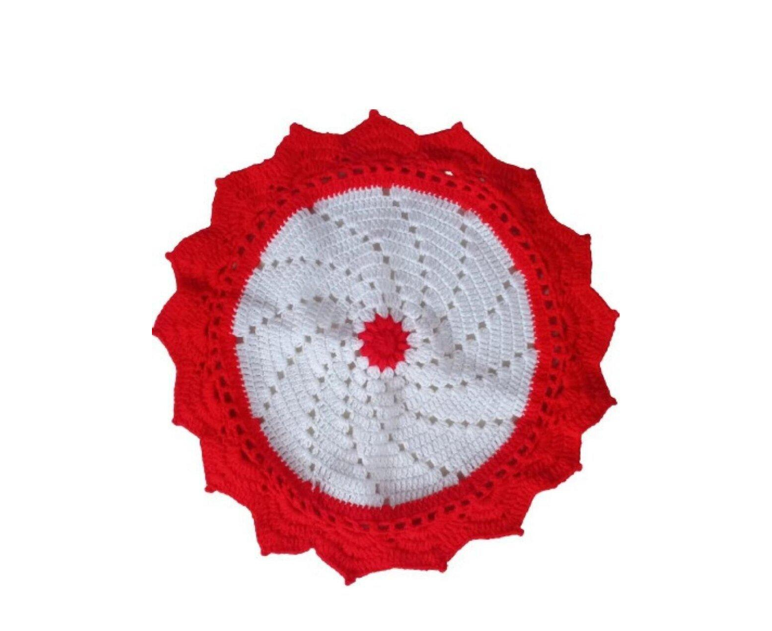 Handmade Christmas crochet doily-red white doily-red doily-crochet doilies-crochet tablecloth-Lace Napkin-Crochet Napperon-Table Centerpiece