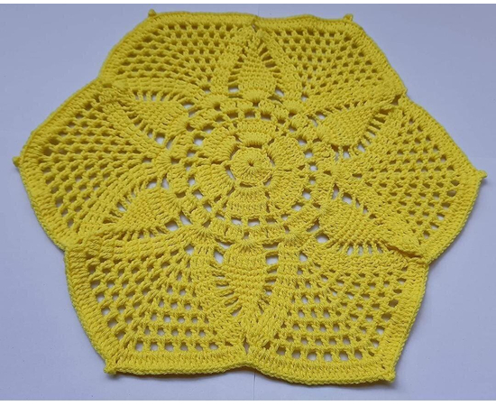 New hand-crocheted yellow doily. This beautiful, lacy doily would be an elegant centerpiece, a lovely accent for your home. This special material is strong and durable. You can see how the thread has a beautiful appearance, higher luster, deeper color penetration, and color retention.