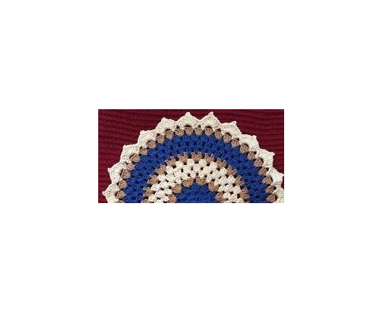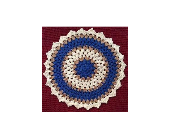 Handmade crocheted doily from high quality cotton yarn in shades of blue, brown and white. This product is hand knitted by the rural women artisan of Narsapur Lace cluster, Andhra Pradesh, India.