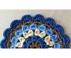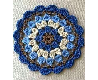 Handmade crocheted doily from high quality cotton yarn in shades of blue, brown and white. This product is hand knitted by the rural women artisan of Narsapur Lace cluster, Andhra Pradesh, India.