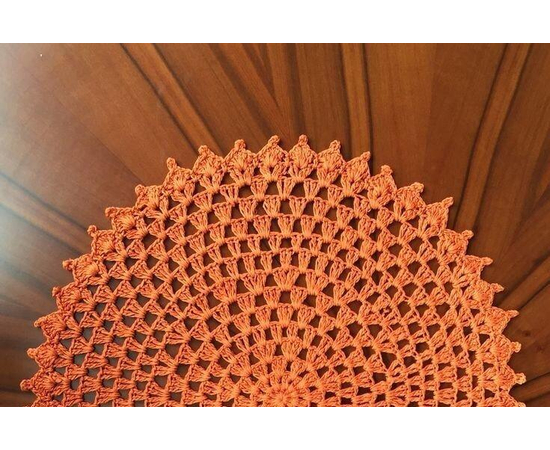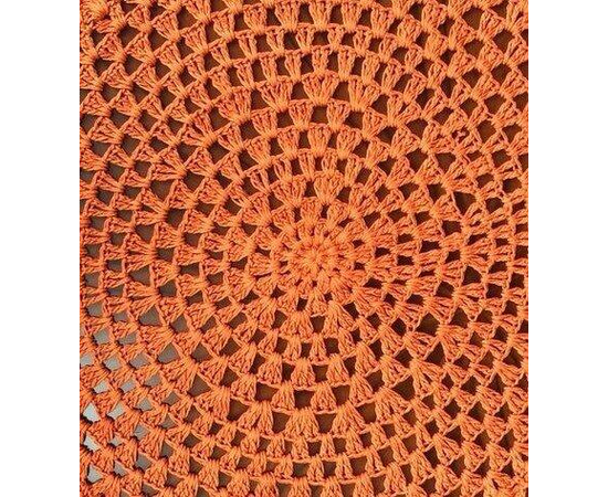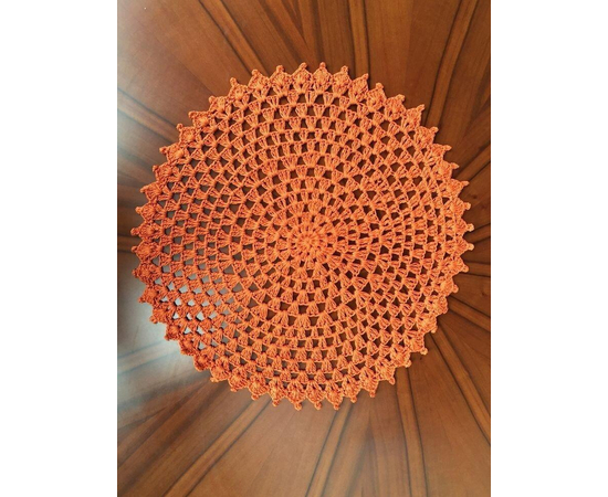 Handmade crocheted doily from high quality cotton yarn in orange color. This product is hand knitted by the rural women artisan of Narsapur Lace cluster, Andhra Pradesh, India.