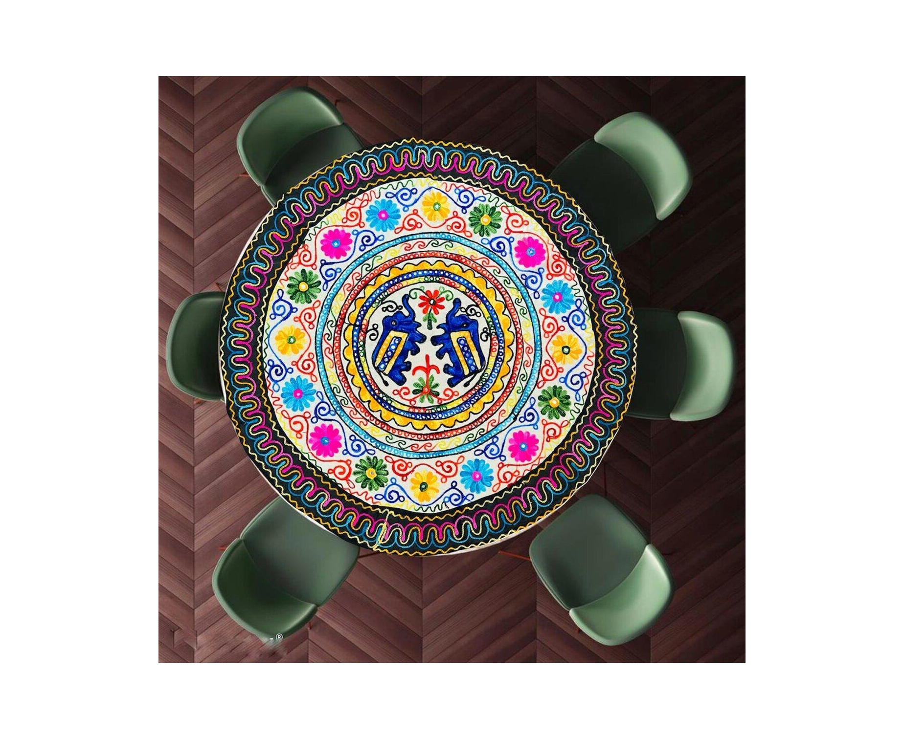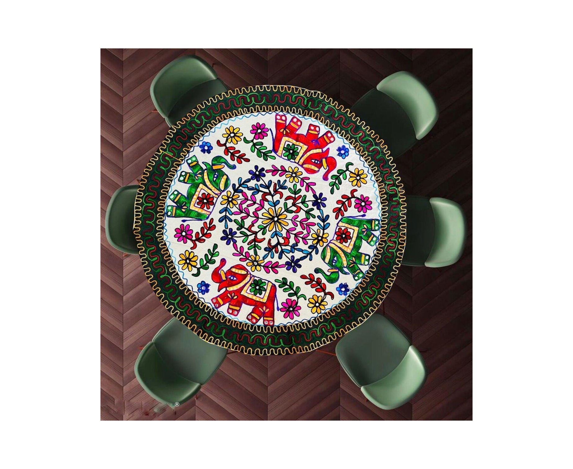 Indian Handmade embroidered art work round table cover/Thread Embroidery Table Cloth/Artwork dining table Cloth/Vintage pattern design table cover