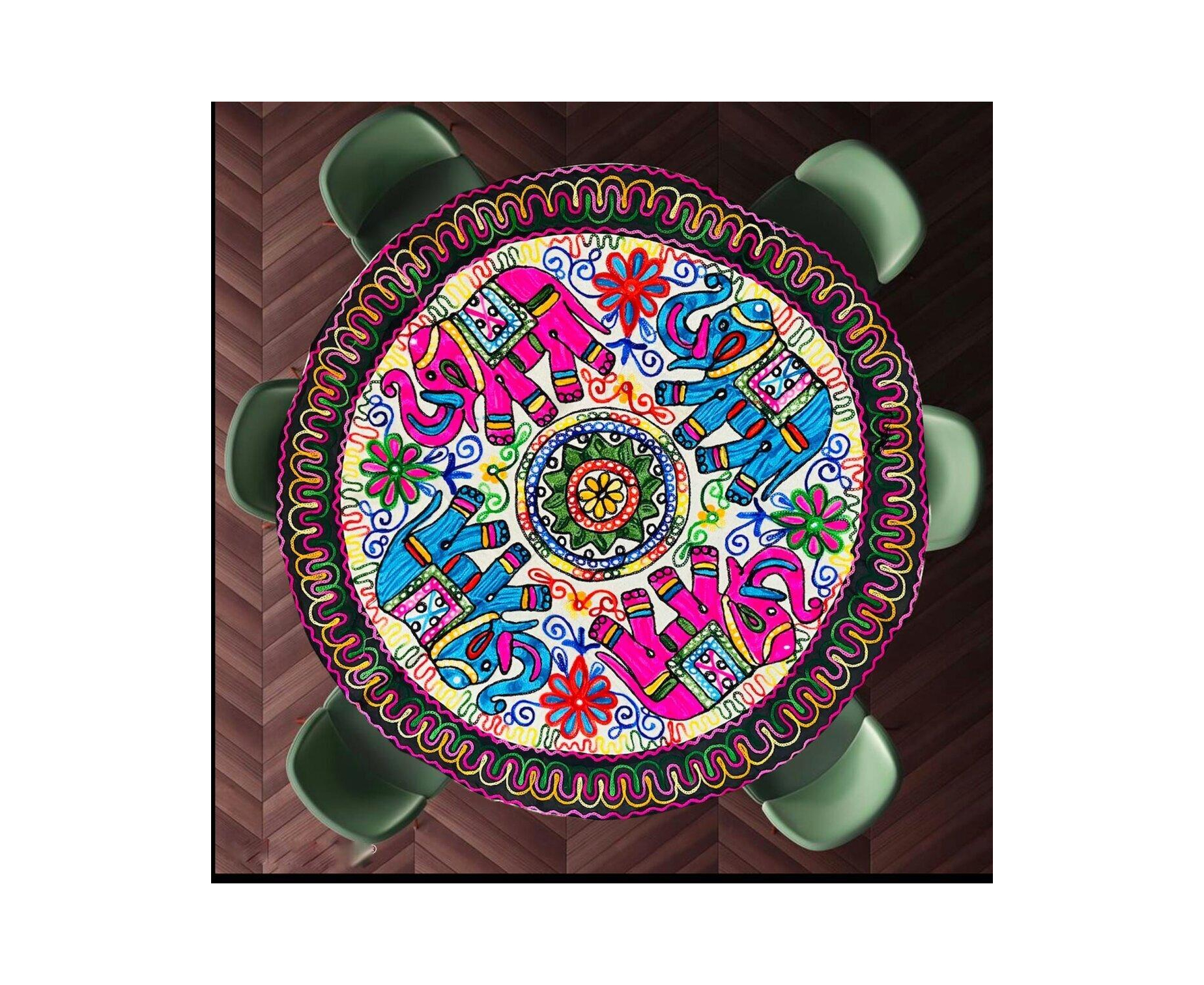 - This 100% elegant Indian Artwork Print design cotton tablecloth is a perfect fit and a necessary essential to compliment the decor of your dining ensemble.