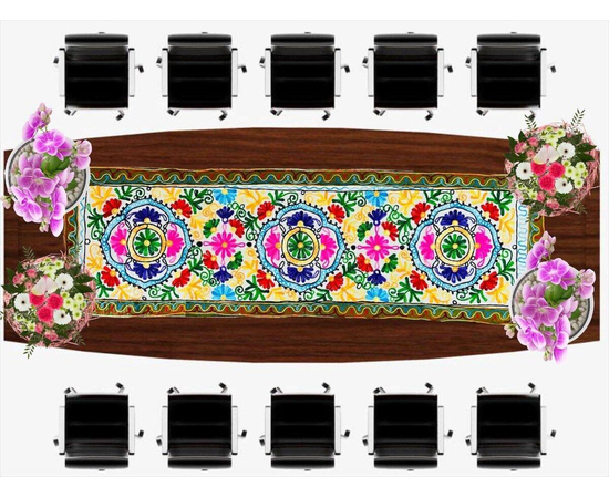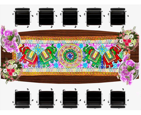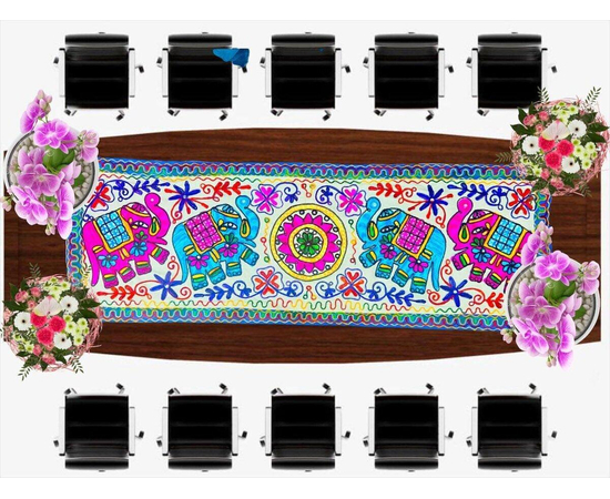 Indian Handmade Embroidered Art work table runner /Thread Embroidery Table Cloth/Artwork dining table Cloth/Vintage pattern elephant embroidered table runner