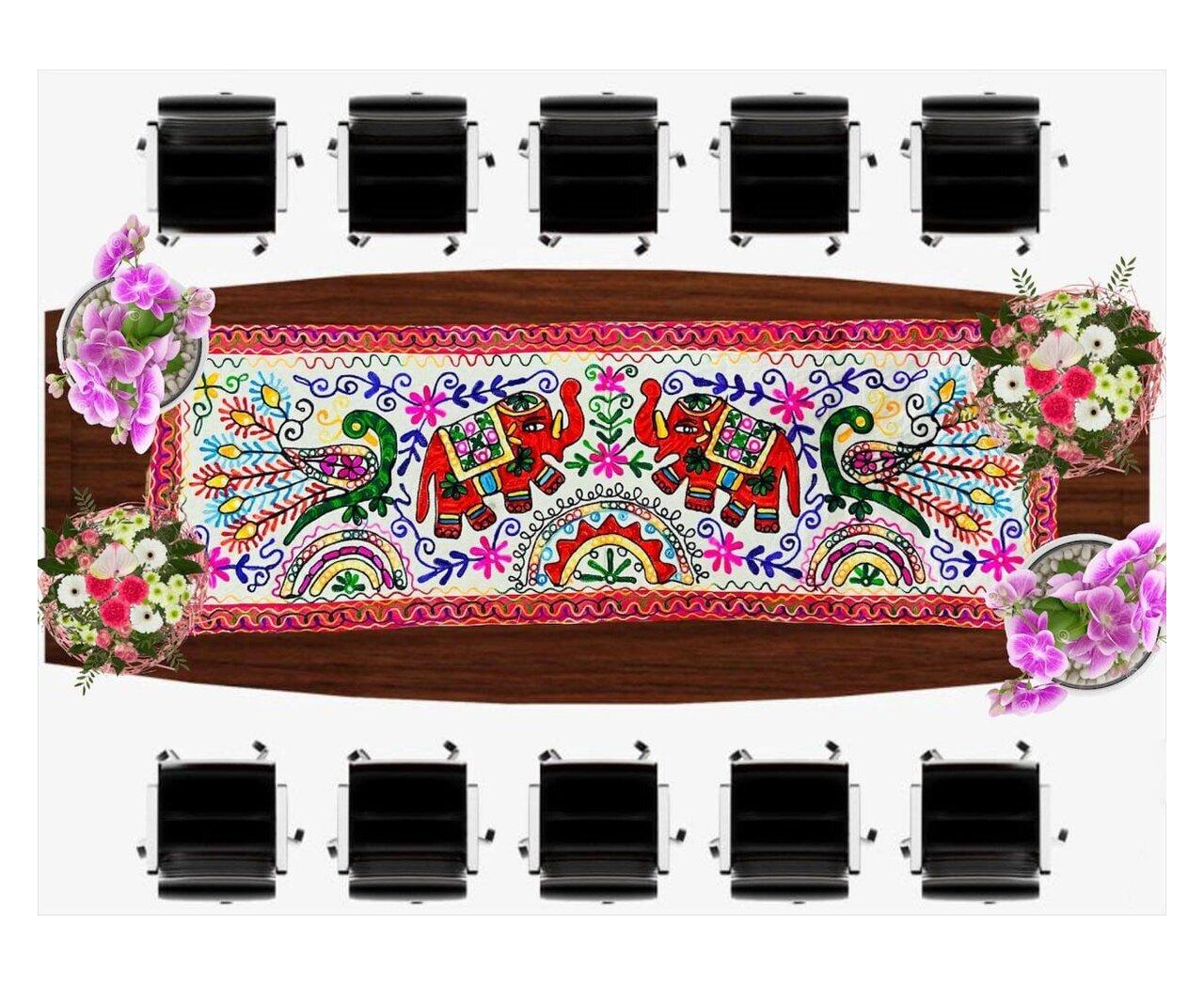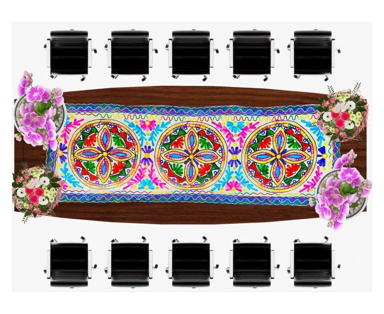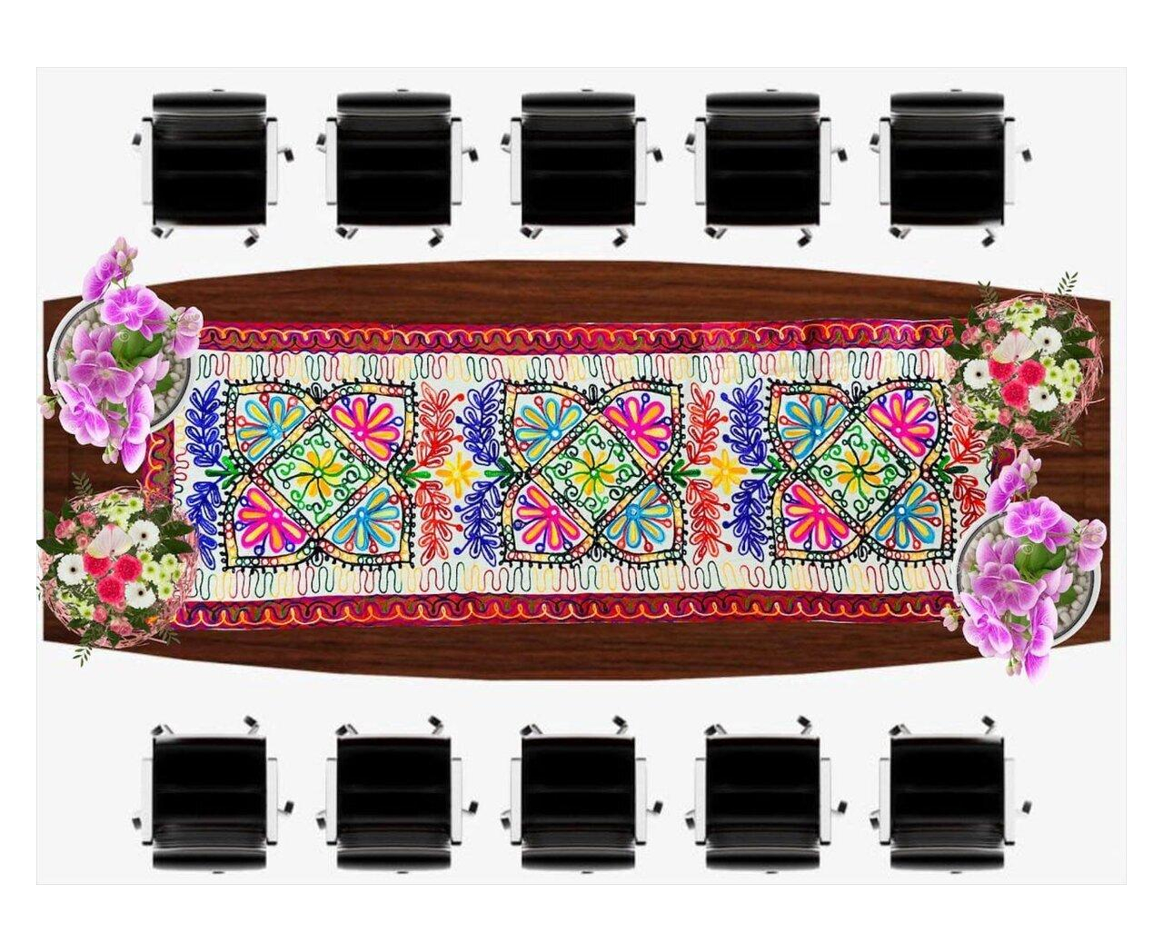 Indian Handmade embroidered Art work table runner /Printed Table Cloth/Artwork dining table Cloth/Vintage pattern floral embroidered table runner