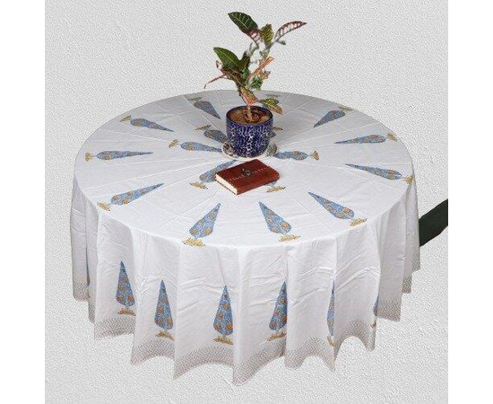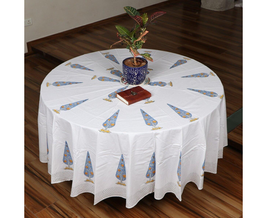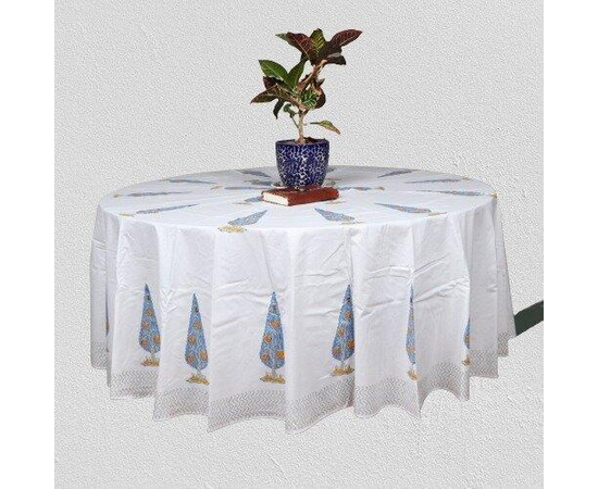 Indian Traditional Hand Block Print Table Cover | White Circular Table cloth For Office, Home, Restaurants, Hotels | Floral Round Dinning Table Cloth | Latest design table cover