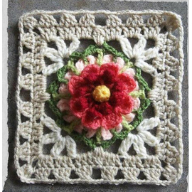 Green square motive, crochet square, pineapple square with border, granny square, afghan block crochet, Vintage Handmade Irish Crochet Square, Motive - Craft...