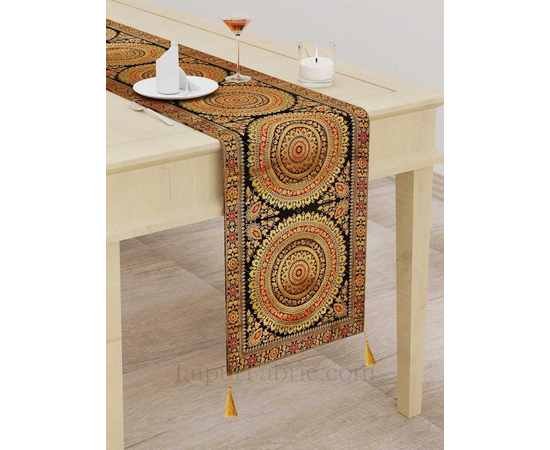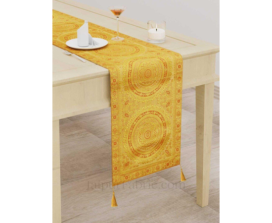 Beautifully crafted piece with designs weaved in cloth to create a timeless piece. Good quality Table runner comes with tassels. This piece will give any dining setting a very elegant look.