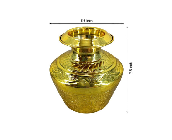 Explore wide range of Pooja Samagri from the house of Pure Source India available on Anuna.com. This Brass Lota / Pooja Kalash is made from Pure Brass and is available in Gold color which is sure to redefine and add elegance to your interior collections. The Brass Lota has been designed considering the Modern style which definitely suits your home. It is also an ideal gift for several occasions. A Kalash is placed with due rituals on all important occasions like the traditional housewarming (grihaparves), wedding, daily worship etc. it is placed near the entrance as a sign of welcome it is also used in a traditional Manner while receiving holy personages.
