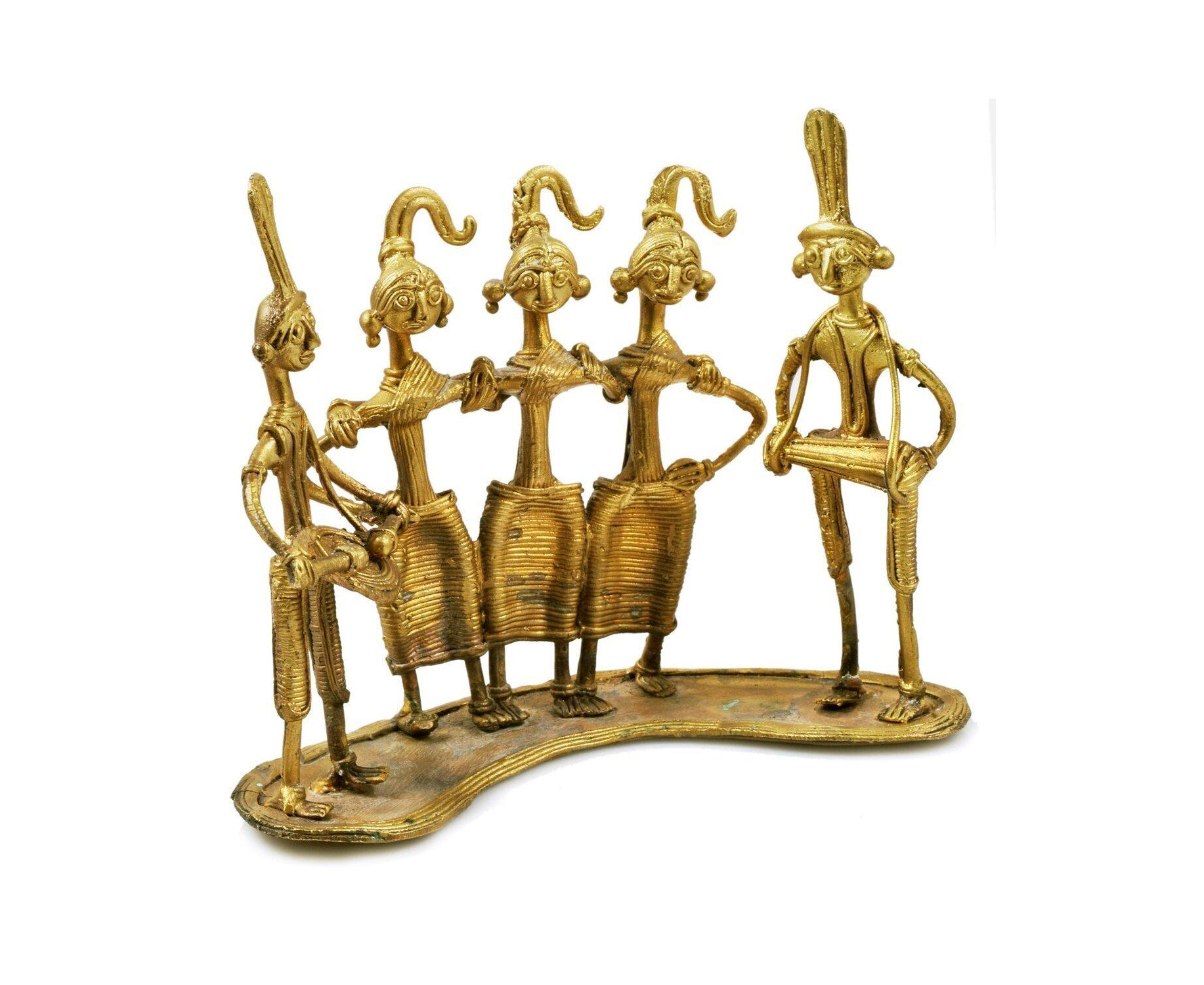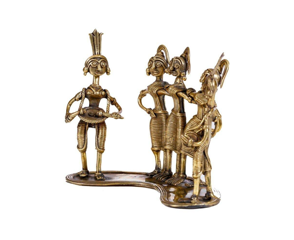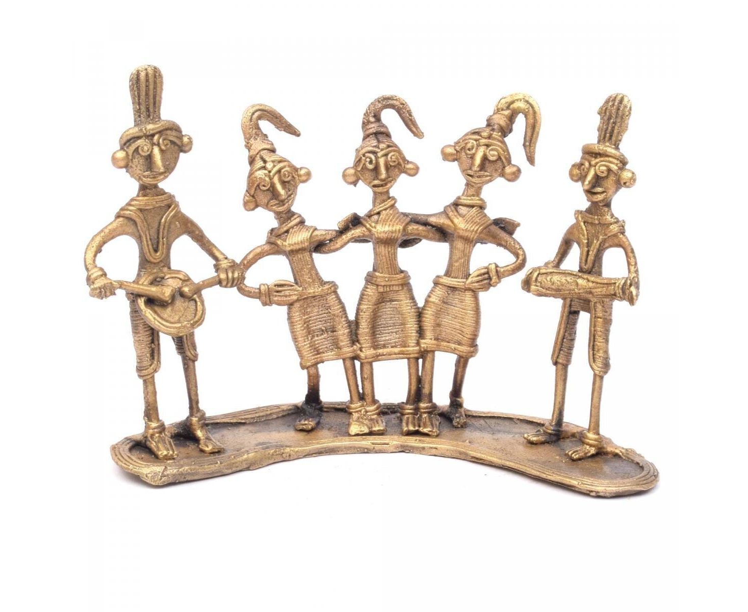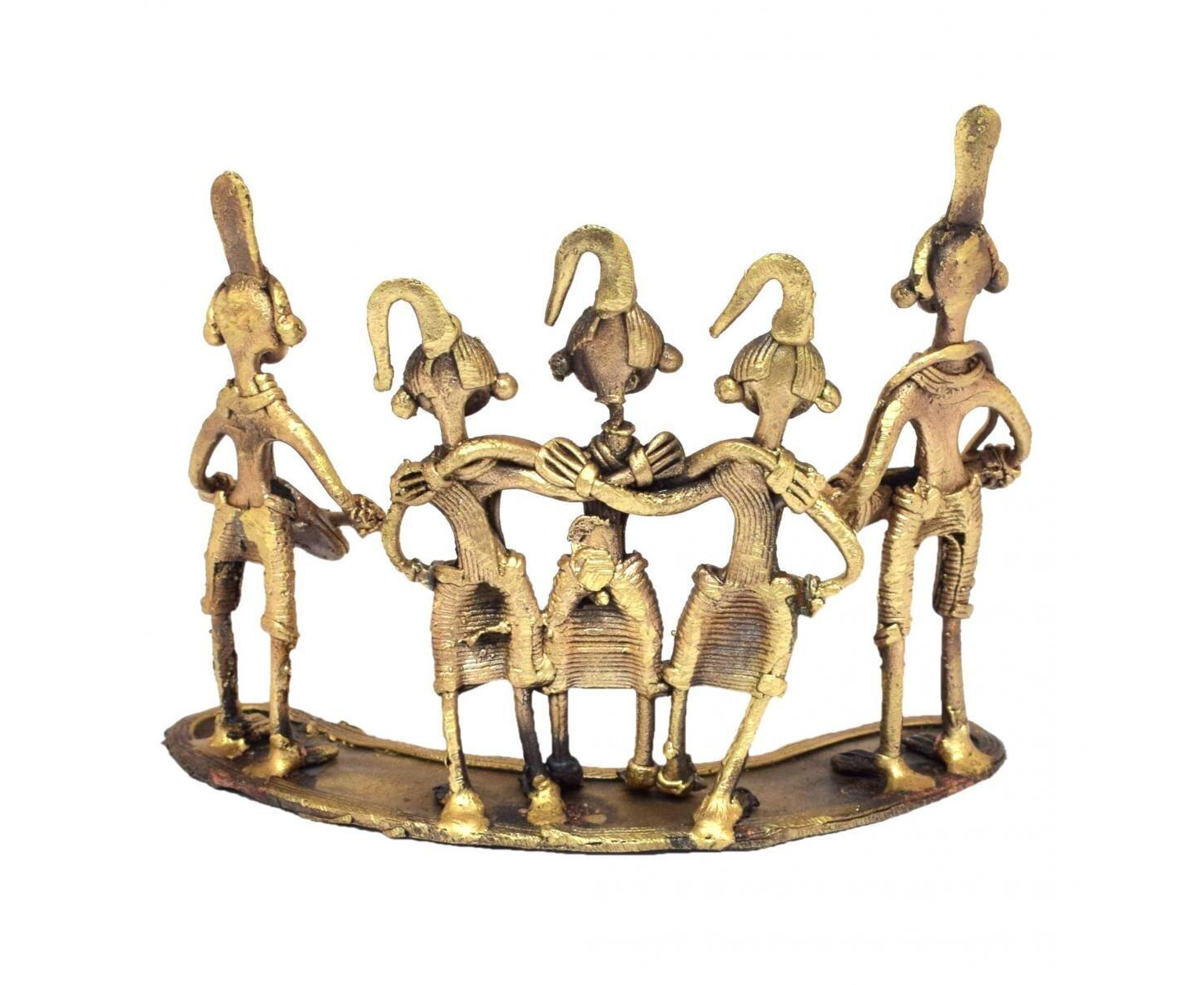 Beautiful handmade Dokra Metal Five Members Dancing Group, Living room Decor/Dhokra Craft- Dancing Men and Women Show piece
