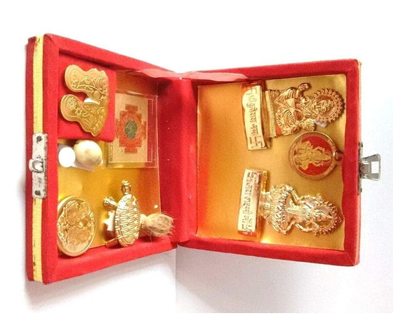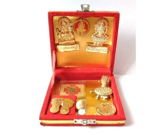 • Package Contents: Laxmi Idol, Kuber Idol, Kuber Kunji 2 , Laxmi Charan Paduka, Gold plated Shree Yantra Coin, Sampurna Laxmi Mahayantra, Golden tortoise With Plate, Kuber Yantra