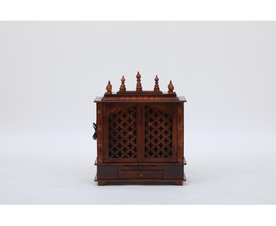 Rajasthani Ethnic Handcrafted Wooden Temple with Door and Light/Mandir/Pooja Ghar/Mandapam