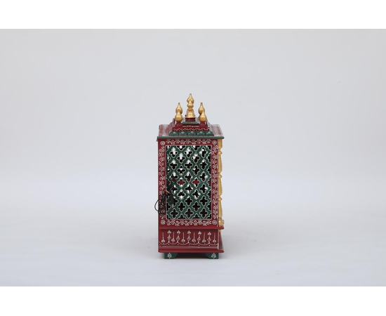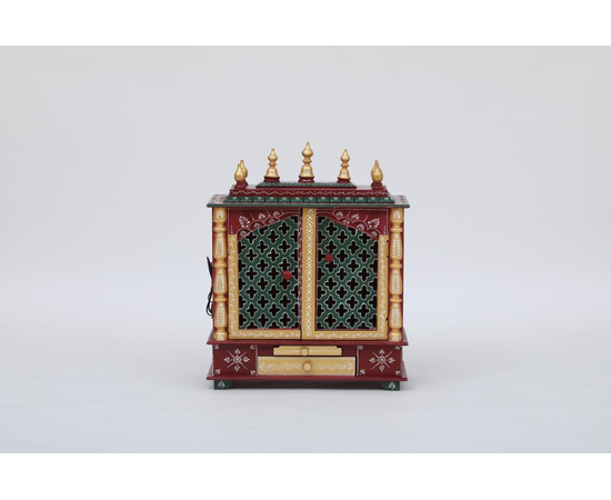 Home temple or Pooja mandir- Designed for your home with supreme quality material and artwork done by experienced artists. Select your favorite color from the available options. This item has the unique feature that it has been provided with an LED bulb inside. The wooden temple's outer size is Width: 24 Inches, Depth: 12 Inches, Height: 30 Inches. To measure with idols that you want to place inside to make sure they fit your requirements, the inner size where you place the idols of the temple is inside dimensions Width: 22 Inch, Depth: 10 Inches, Height: 16 Inches Weight:12 Kg It has one removable shelve that can be used or removed as per need for placing Pooja Idols.