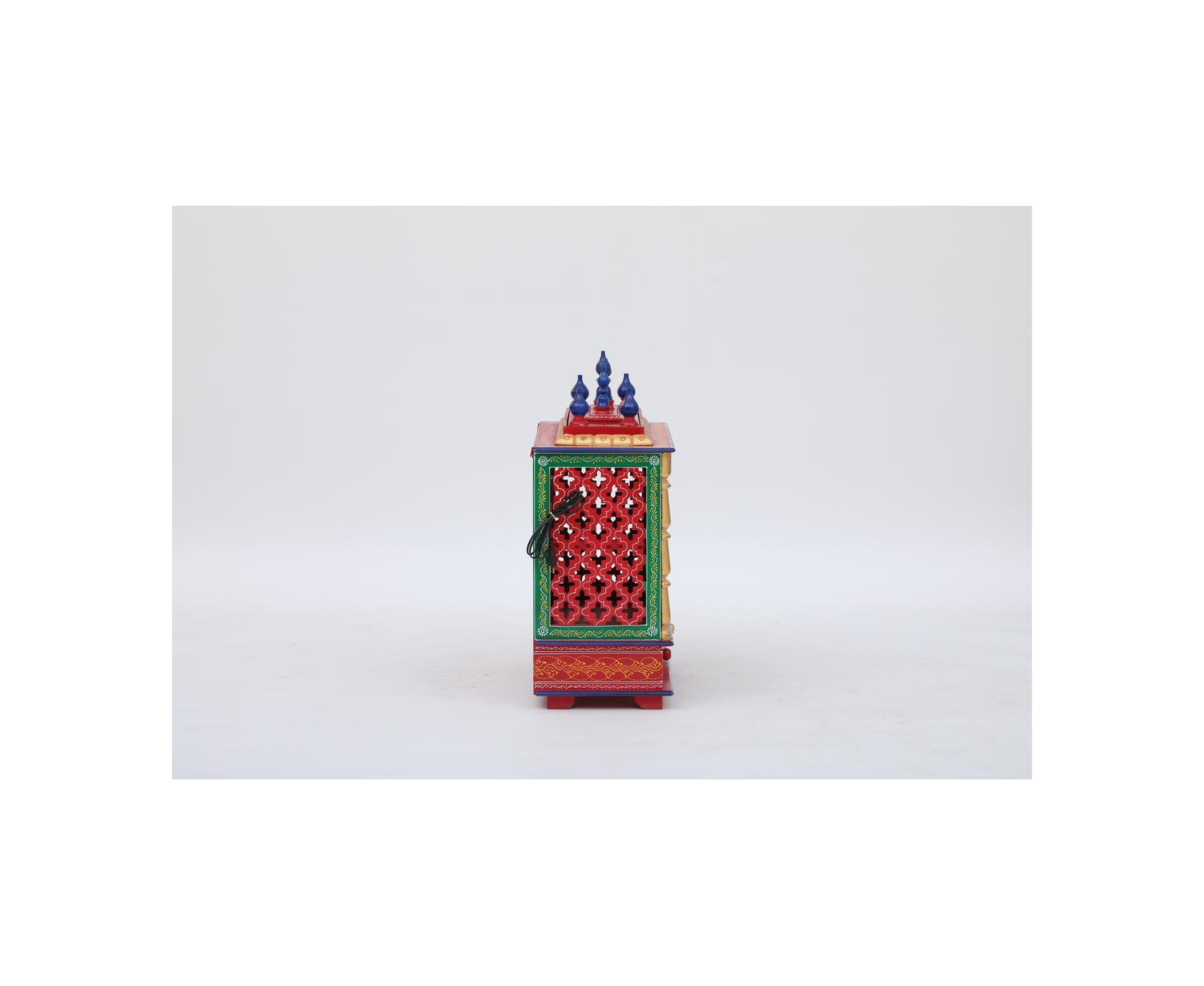 Home temple or Pooja mandir- Designed for your home with supreme quality material and artwork done by experienced artists. Select your favorite color from the available options. This item has the unique feature that it has been provided with an LED bulb inside. The wooden temple's outer size is Width: 24 Inches, Depth: 12 Inches, Height: 30 Inches. To measure with idols that you want to place inside to make sure they fit your requirements, the inner size where you place the idols of the temple is inside dimensions Width: 22 Inch, Depth: 10 Inches, Height: 16 Inches Weight:12 Kg It has one removable shelve that can be used or removed as per need for placing Pooja Idols.