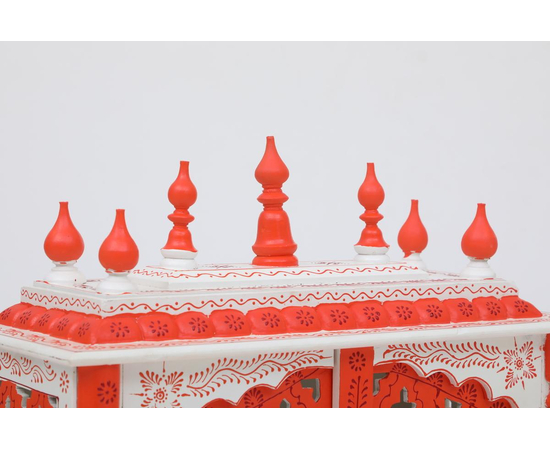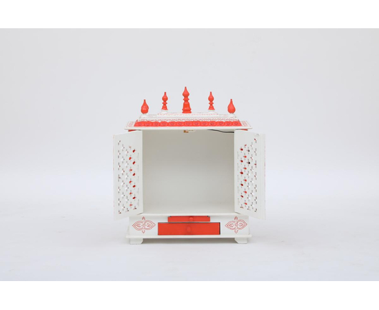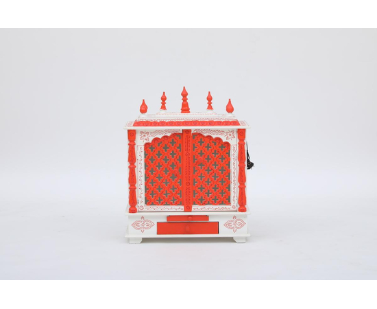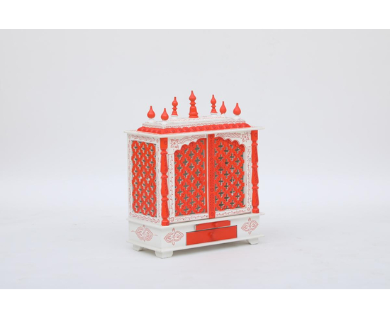 Mango Wood And MDF With Door Pooja Mandir for Home Office Prayer Room Mantap Pooja Ghar Handmade wall mount Red Hindu Temple