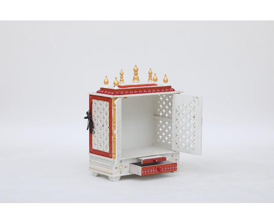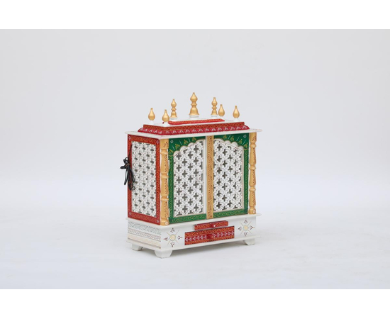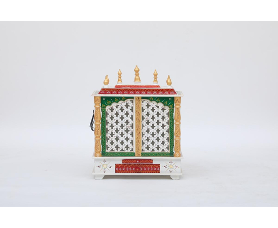Home temple or Pooja mandir- Designed for your home with supreme quality material and artwork done by experienced artists. Select your favorite color from the available options. This item has the unique feature that it has been provided with an LED bulb inside. The wooden temple's outer size is Width: 24 Inches, Depth: 12 Inches, Height: 30 Inches. To measure with idols that you want to place inside to make sure they fit your requirements, the inner size where you place the idols of the temple is inside dimensions Width: 22 Inch, Depth: 10 Inches, Height: 16 Inches Weight:12 Kg It has one removable shelve that can be used or removed as per need for placing Pooja Idols.