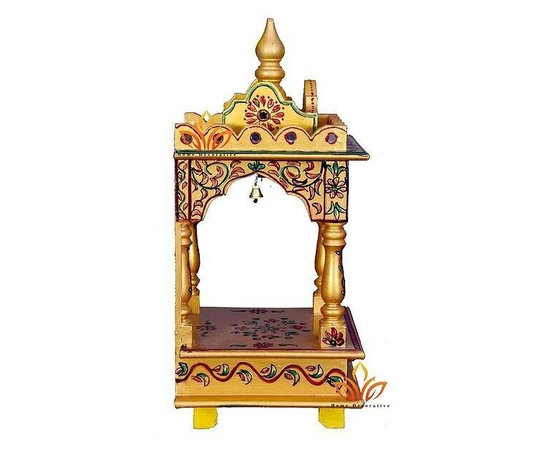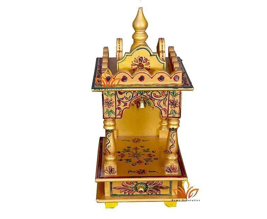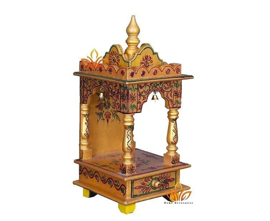 Wood Temple Mandir Handcrafted Hindu Pooja Ghar Mandap For Worship Hand Painted Home office and Wall Decor Art