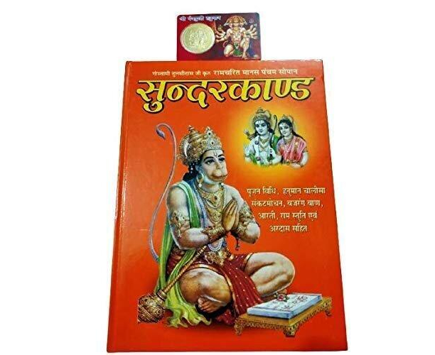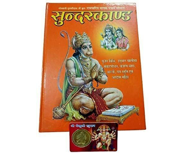 Sundarkaand with Shri Panchmukhi Hanuman Pocket Coin for Pooja | Hindu religious book | Ramayan Sundarkand