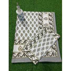 Indian Traditional Jaipuri Hand Block Printed Boder Design Double Bedsheet King Size with 2 Pillow Covers