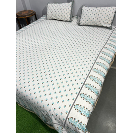 Jaipuri Hand Block Booti Printed Cotton King Size Bedsheet 3 Pcs set (1 Bedsheet 2 Pillow Cover)