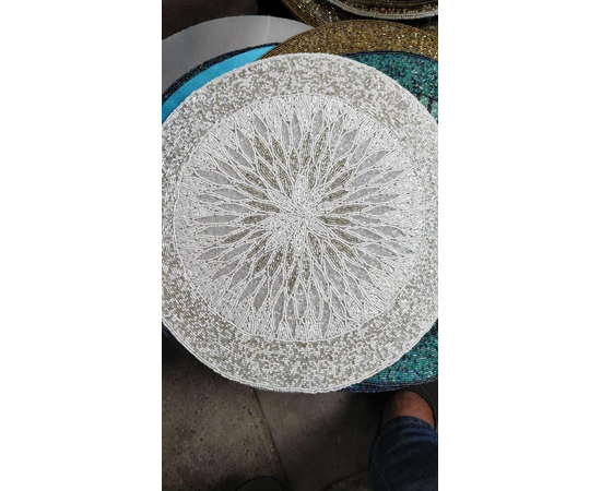 Zardozi Work | Luxury Handmade Beaded place mats Golden set glass-beads 14-inch diameter Charger plate Center Piece Indian decoration home living room Housewarming Gift