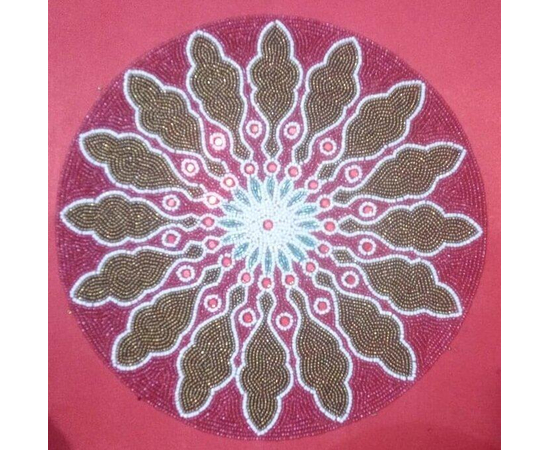 Zardozi Work | Handmade Beaded Red Round place-mat red, golden, and white glass-beads 12-inch diameter Charger plate Center Piece | Indian decoration | Housewarming Gift