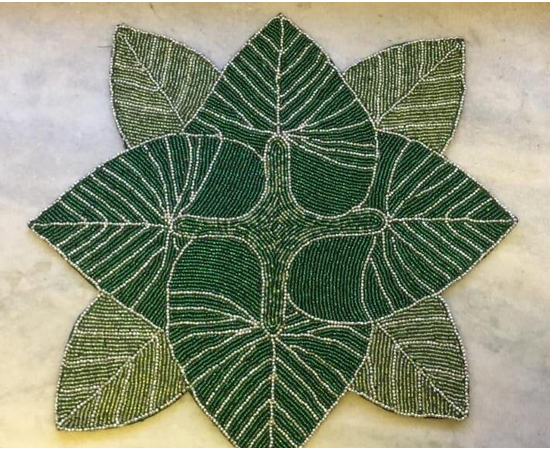 Handmade Zardozi work Glass Beaded Placemats, Green Leaf Beaded Placemat, Placemats, Dining Placemats, side table mat, gift for her(14 Inch)