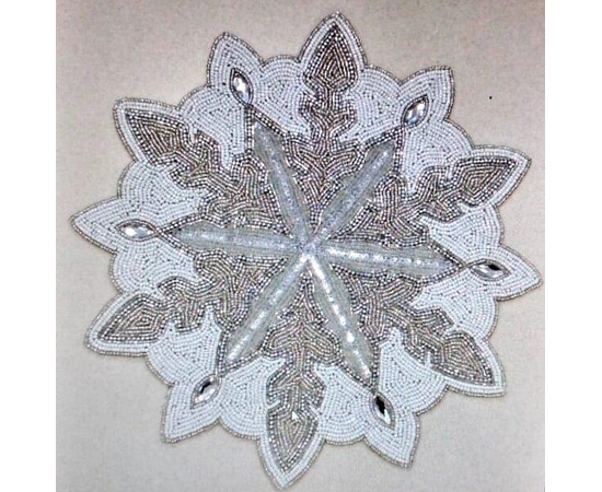 Zardozi work Handmade Table Mat, White and Silver Snowflake Beaded Placemat Centerpiece with Sequin Accents, Decorative mat, Beautifully Hand made Size 14", House Warming Present