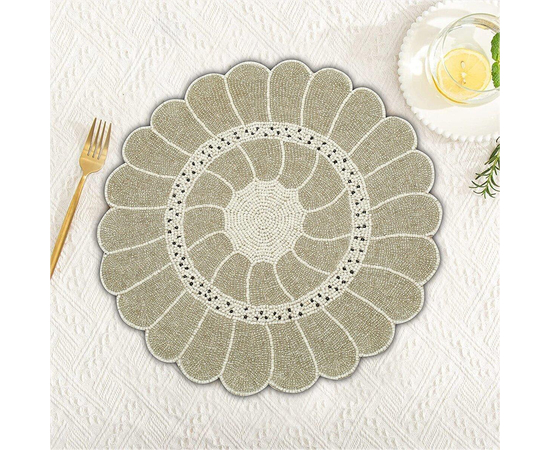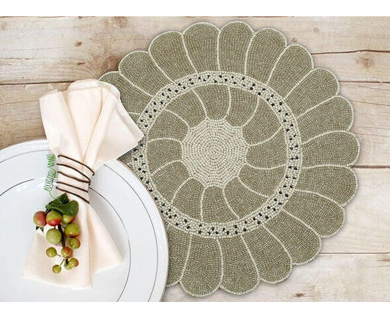 The placemat's glistening finish will add a layer of richness and sophistication to your table. These intricate beadwork embellishments reflect ambient light beautifully creating an eye-catching elegant design that’s sure to impress your guests.