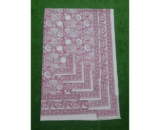 Traditional Indian Jaipuri Designs Pure Cotton Hand Made Block Print 1 Table cover with Set of 6 Napkins Dining Table