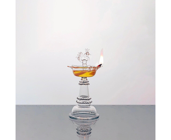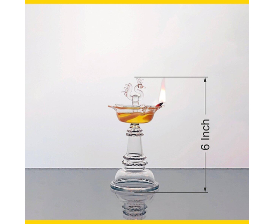 Pooja Samai ( Rod 6") Diya/ Borosilicate Glass Bird Design Pooja Room Oil Lamp/ Inauguration Pooja Lamp Home Decor