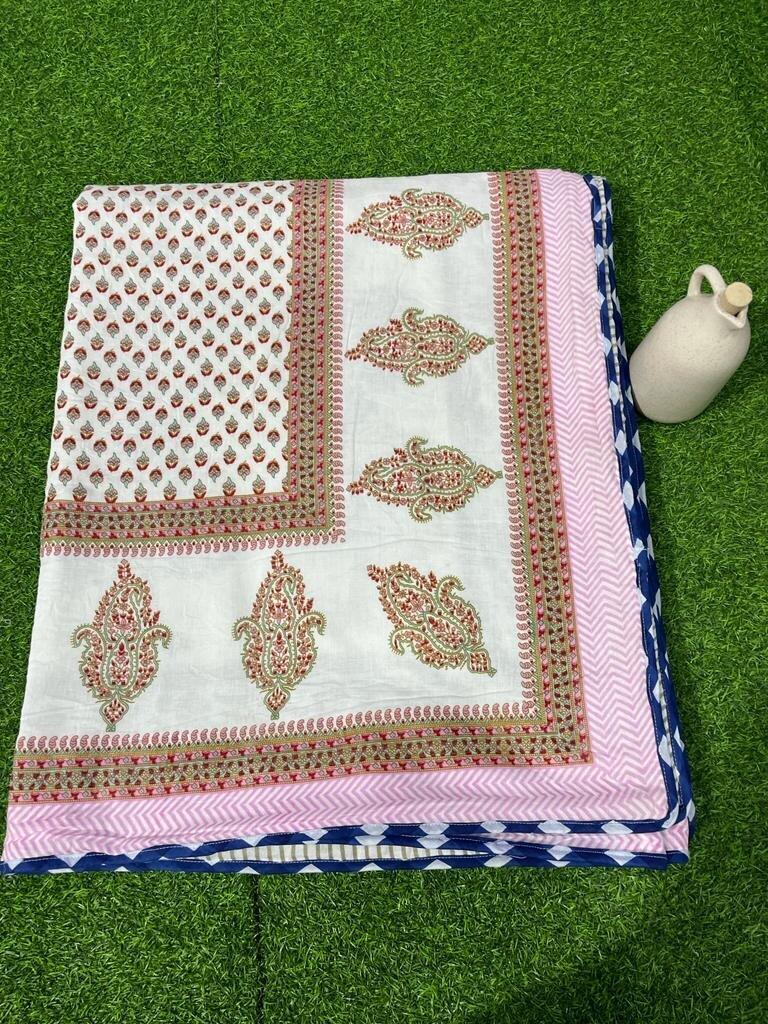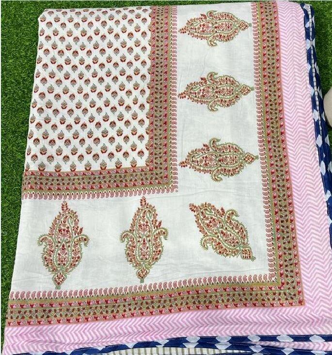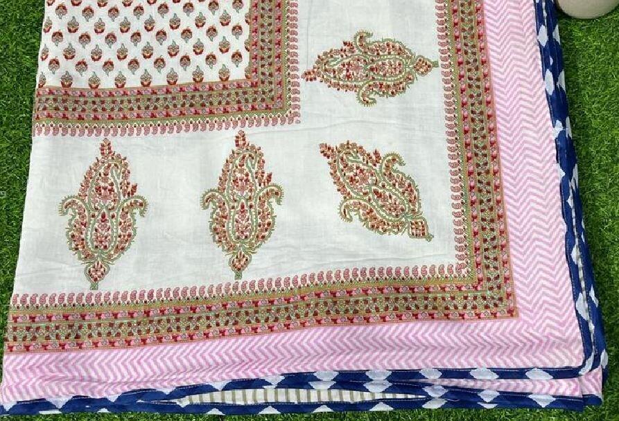 Famous Jaipuri Block Print Handmade Dohar, Indian Cotton Padded Kantha Quilt Reversible, Winter Blanket 90×108