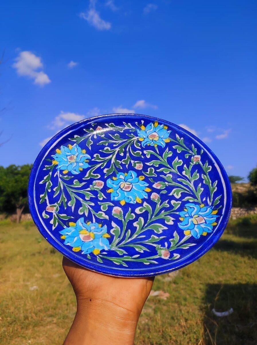 Shri Balaji Blue Pottery Handmade Decorated Pottery Wall Hanging Art Plate for Home, Beautiful serving plates