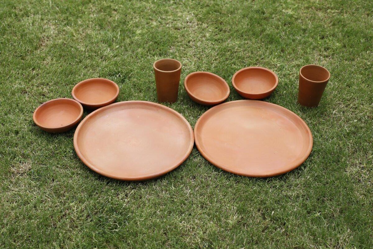 Clay/Terracotta/Mud Dinner Thali For your Dinner Guests / Anniversary Gift Clay dinner thali/ Luxury with Clay/ Unique Kitchen item/Dinner Set with Plate 15x15x12