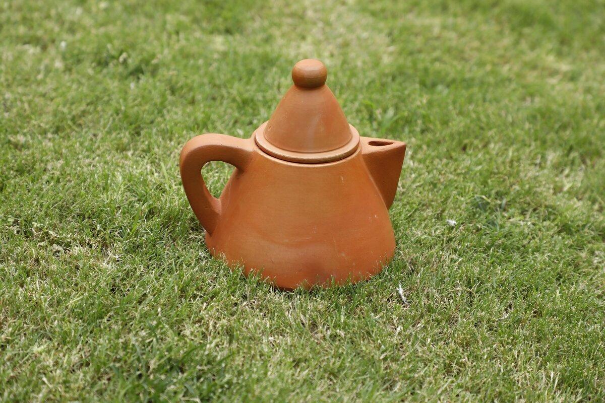 Your evening tea enriched with the touch of nature, with a size of 10x6x5 brown Terracotta conical tea kettle set