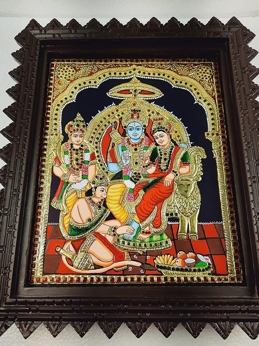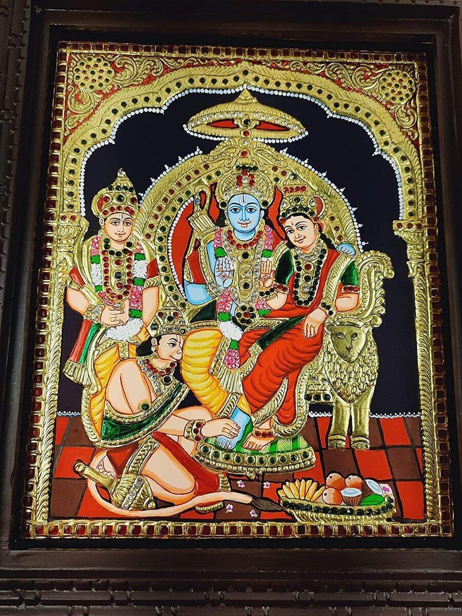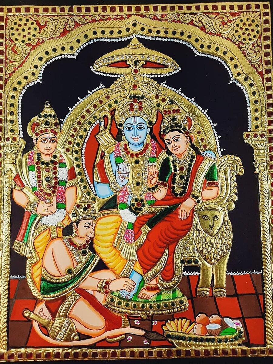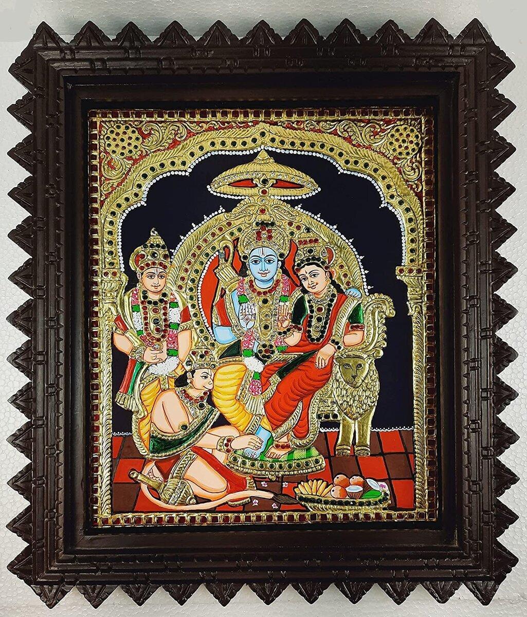 Ram Darbar Tanjore Painting with Wood Frame, Rama tanjore, Ram Sita, Lakshman, hanuman painting, Gold Foils, Indian Art work