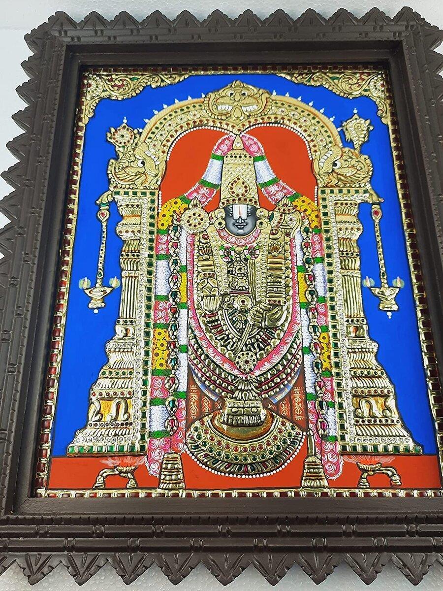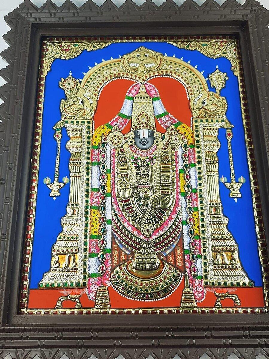 Lord Tirupathi Balaji/Venkatachalapathi Tanjore Paintings, Gold Foil, Wood Frame, Balaji Tanjore Painting, Pooja room Décor, Indian Art work