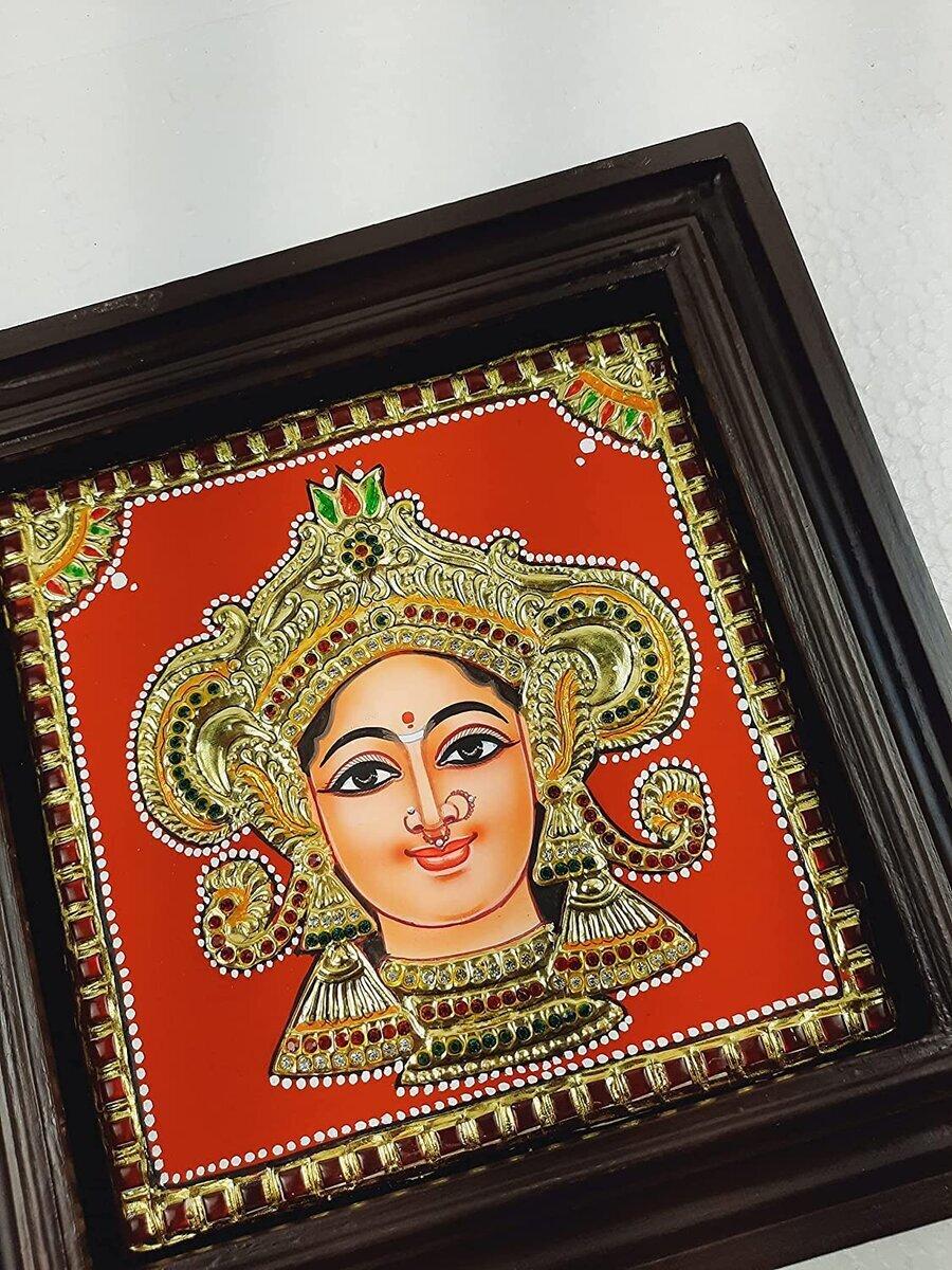 Durga Devi Tanjore painting with wood Frame, Goddess Durga, Wall Décor, Indian Art Gift, Hand Painted, Pooja Room Painting, Indian Art work