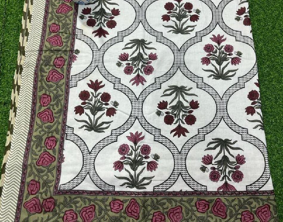 Indian Handmade Jaipur Designer floral Dohar Home Decor/ Handmade Block Printed Cotton Blanket (60x90)